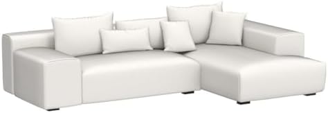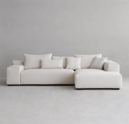 Acanva Modern Minimalist Sofa with Extra Deep Seats for Living Room, Bedroom and Lounge, L-Shaped Sectional Couch with Right Chaise,White