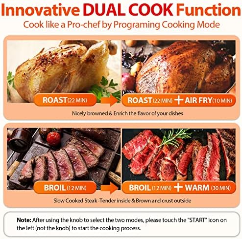 I can't say enough good things about this oven! First of all it is amazingly quiet. It's got every feature you could want - toast, air fry, roast, rotisserie, dehydrate, pizza, dual function, and a bunch more. You can turn off the button sounds. The menu has actual words, and is very easy to use. The touch control is sensitive. It is well insulated and doesn't put off a ton of heat. The handle doesn't get hot at all. It is large enough to have a really good capacity on the interior, but it's not too massive on the countertop. You CAN actually rotisserie roast a 4-5 lb chicken in it! I cooked one that was just under 5 lbs last night, and it was delicious. The manual that comes with it is detailed and easy to understand. It makes great toast. It's reasonably easy to clean. It works quickly and efficiently. I previously had one of the first generation air fryers - the one that they sold on the infomercials. I had lots of problems with it. This over is leaps and bounds above that one. I've never heard of this brand before, but whoever designed this thing really put a lot of thought and work into making it excellent. Highly recommend!