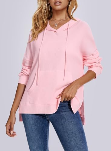 Womens Hoodies Pullover Waffle Knit Tops