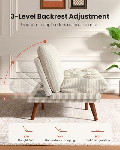 Maximize comfort and space efficiency with our convertible futon sofa couch. Featuring soft, textured corduroy fabric, the vintage look is stylish while providing lasting comfort for lounging, sitting, or sleeping, making it an ideal solution for apartments and mid-century inspired living spaces.