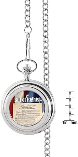 The Silver Tone Half Dollar Coin Pocket Watch is the classic time piece. A simple but sleek silver tone case houses a genuine United States half dollar colorized with the Bill of Rights. The JFK Half Dollar first minted in 1964 was intended as a memorial to the assassination of President John F. Kennedy. It is still minted today but rarely seen as they have not been released into circulation for over 10 years. The Bill of Rights spells out Americans’ rights in relation to their government. The coin is secure in the pocket watch casing and opens to quartz style and second sweeping hand over classic Roman numerals. The pocket watch is 1 7/8 inches in diameter and hangs from a 14 inch steel fob open link chain. This historical high polished time piece displays the beauty of a genuine US coin on the front and then brushed finish on the back, which may be engraved and personalized. Comes with a Certificate of Authenticity.