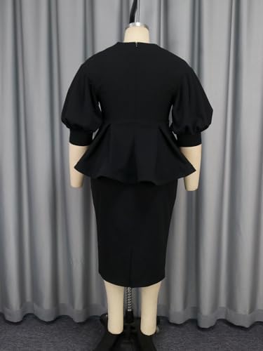 AOMEI Black 2 Piece Outfits for Women Formal Floral Appliques Drop Shoulder Top Plus Size Pencil Skirt Sets