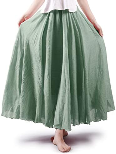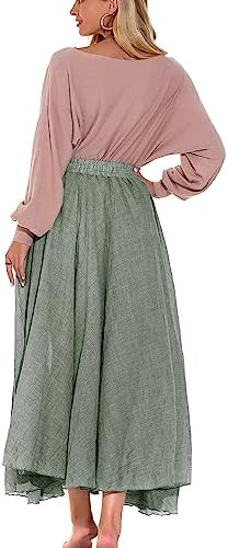 ASHER FASHION Women's Bohemian Style Elastic Waist Band Cotton Linen Long Maxi Skirt Dress