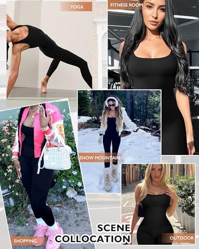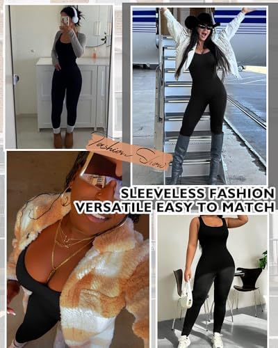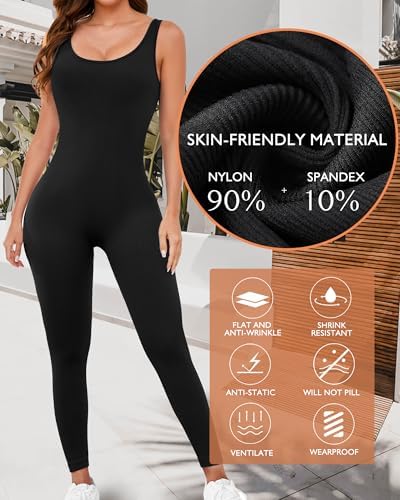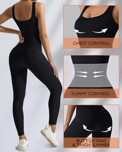 AURUZA Jumpsuit for Women Workout Seamless Jumpsuits Yoga Ribbed One Piece Tank Tops Rompers Sleeveless Exercise Jumpsuits