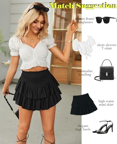 Avidlove Women's High Waist Ruffle Flowy Mini Skirts Stretchy Lined Layered Pleated Casual Beach Short Skirt