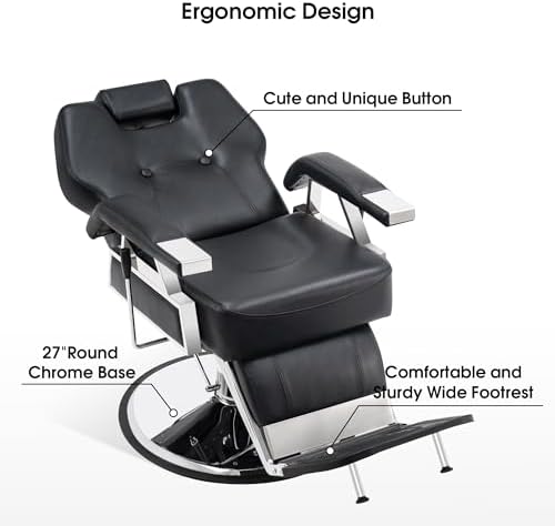 This classic and deluxe barber chair would be a perfect addition for Barbershop, Beauty Salons, Tattoo Parlors and more. Textured synthetic leather with high density sponge provides a comforting place for your customer to relax. An elegant footrest provides support and allows for easy positioning of the client. You and your client will love the luxury and comfort from this timeless example of a quality.