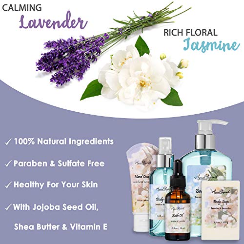 Bath Spa Gift Sets - Luxury Basket With Jasmine & Lavender - Spa Kit Includes Wash, Bubble Bath, Lotion, Bath Salts, Body Scrub, Body Spray, Shower Puff, Bathbombs, Soap and Towel