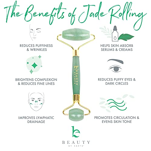 Beauty by Earth Jade Roller for Face - Face Massager Skin Care Tools with Small Eye Roller for Puffy Eyes, Face Care to Reduce Puffy Eyes, Facial Roller Self Care Gifts for Women