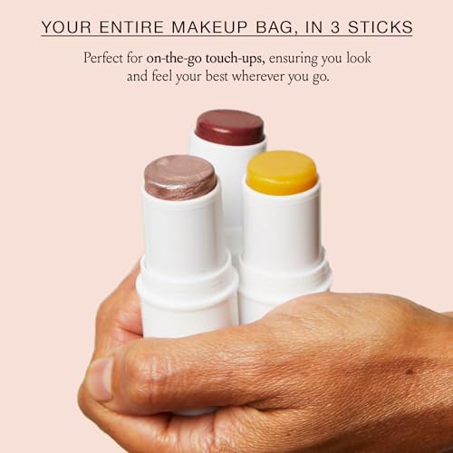 BOOM! by Cindy Joseph Boomstick Trio - 3 Pack Boom Makeup Sticks - Blush Stick in Berry, Highlighter Stick & Moisturizer Stick - Multi-Use Vegan Makeup Sticks for Older Women & Mature Skin
