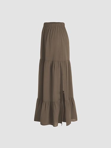 CIDER Solid Elastic Waist Ruffle Hem Tiered Midi Skirt
