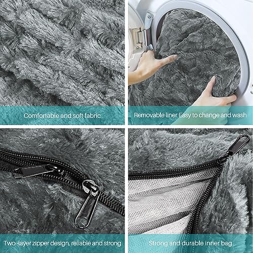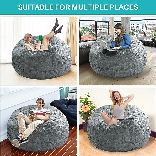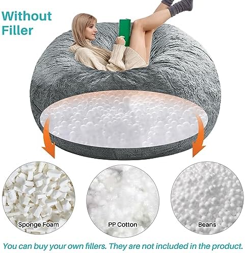 Giant Fur Bean Bag Chair Cover for Kids Adults, (No Filler) Living Room Furniture Big Round Soft Fluffy Faux Fur Beanbag Lazy Sofa Bed Cover