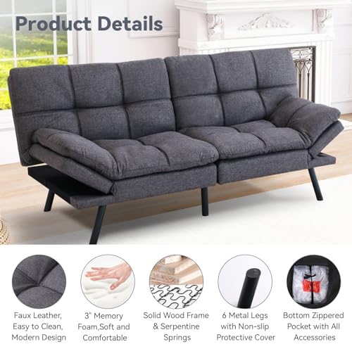 The sofa is equipped with solid wooden frame and 6 heavy-duty metal legs make this sofa bed sturdy and add more style to the sofa's elegant design.