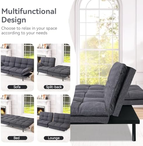 The futon sofa bed is made of polyester fabric and the surface is tufted design, not easy to wrinkle, skin-friendly and comfortable.