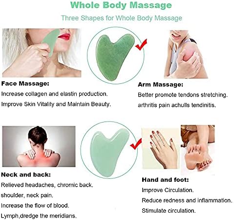 You can get 1 Gua Sha Scraping Tools set.The gua sha tools are made of high quality natural jade, Beneficial minerals is good for Skin Beauty and Body Health.Insist on using our Gua Sha Jade boards daily, you can see the good changes on your face!Full refund or replacement is available if you are not satisfied with our Gua sha scraping.