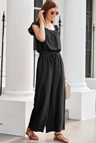 Dokotoo Jumpsuits for Women 2025 Summer Ruffle Sleeves Square Neck Rompers Drawstring Overalls with Pockets