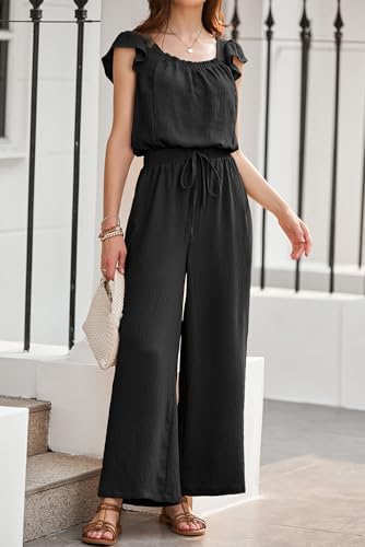 Dokotoo Jumpsuits for Women Summer Ruffle Sleeves Wide Leg Overalls