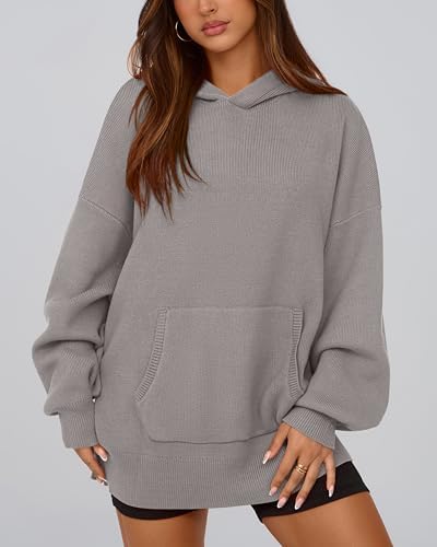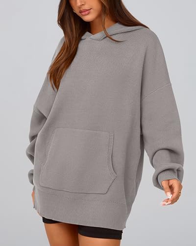 dowerme Women Oversized Sweaters 2024 Lantern Long Sleeve Drop Shoulder Chunky Knit Hooded Pullover Sweater With Pocket