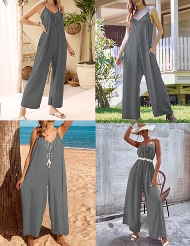 Ekouaer Women's Sleeveless Spaghetti Strap Wide Leg Jumpsuits