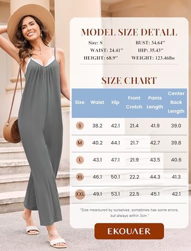 Ekouaer Womens Sleeveless Jumpsuits Adjustable Spaghetti Strap Long Pant Romper-Drapes Comfortably