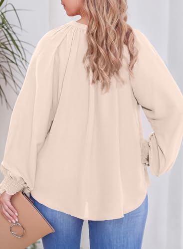 Eytino Womens Plus Size Tops Sexy V Neck Smocked Long Sleeve Casual Chiffon Blouse Flowy Work Shirts(1X-5X)