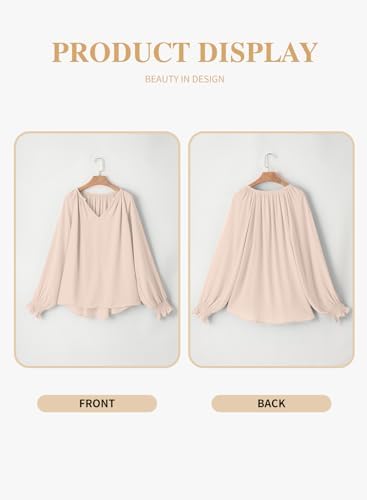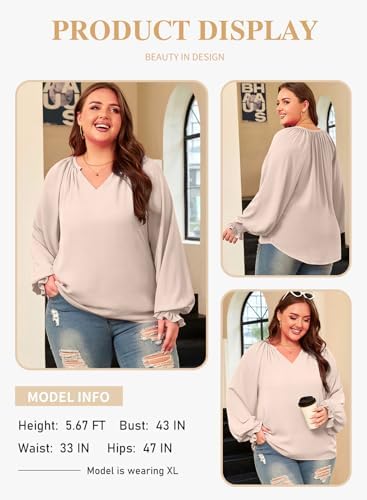 • Eytino Plus Size Tops for Women Sexy V Neck Puff Long Sleeve Chiffon Blouse
