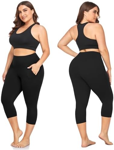 FULLSOFT 3 Pack Plus Size Capri Leggings with Pockets for Women -High Waist Stretchy 1X-4X Workout Yoga Pants