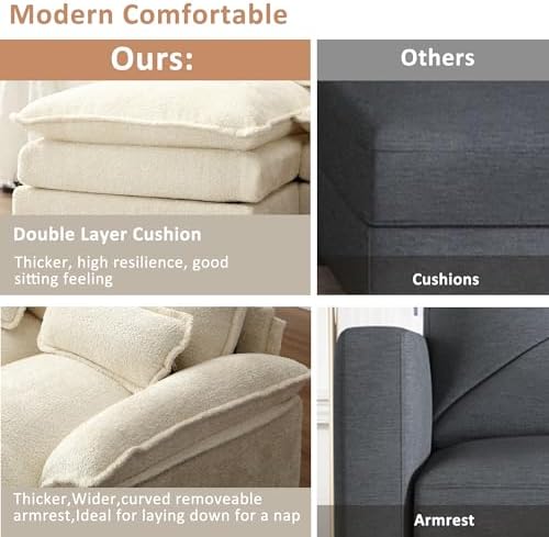 The cloud couch sectional comes with a convenient and versatile removable ottoman, allowing you to customize your seating arrangement according to your preferences and needs. Sturdy solid wood frame, chenille fabric, filled with high-density sponge, making this modular sectional sofa beautiful and comfortable, L shaped living room sofa couch with L shape can be against the wall which is suitable for small living rooms, apartments, home offices.