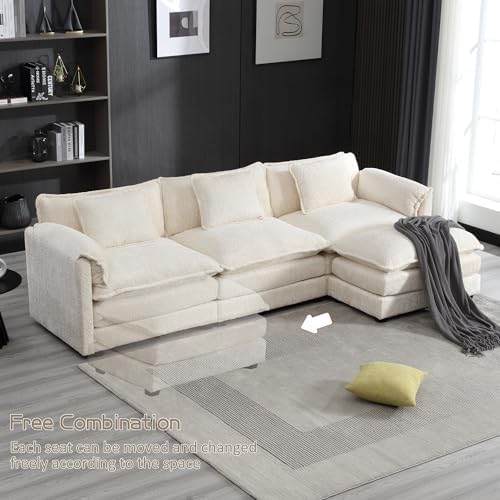 GNIXUU 112" Oversized Sectional Sofa Cloud Couch for Living Room, Modern Chenille L Shaped Couch, Comfy Boucle Modular Sofa Sleeper with Moveable Ottoman & Memory Foam(Beige)