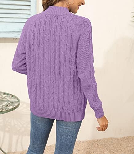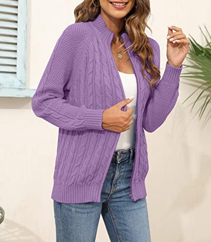 Hongqizo Women's Zipper Cable Knit Sweater Cardigan Long Sleeve Open Front Warm Knit Cardigan Casual Cardigan Knitwear