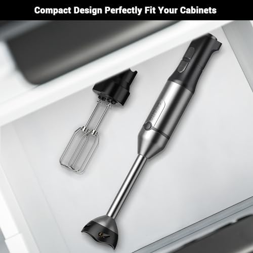 Immersion Blender RPM 16000±10% Scratch Resistant Hand Blender,15 Speed and Turbo Mode Hand Mixer, 3-in-1 Heavy Duty Copper Motor Stainless Steel Smart Stick with Egg Beaters and Chopper