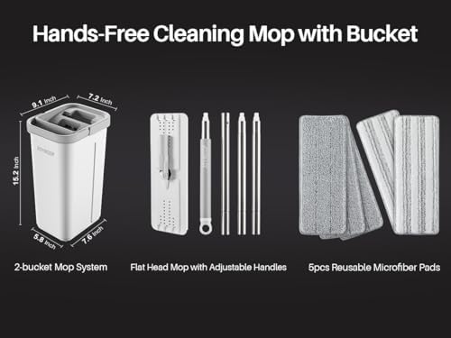 JOYMOOP Mop and Bucket with Wringer Set, Hands Free Flat Floor Mop and Bucket, with 5 Washable Microfiber Pads, Wet and Dry Use, Floor Cleaning System