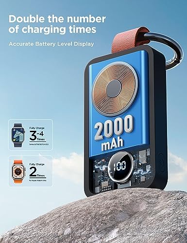 JOYROOM Portable 2000mAh Wireless Charger Compatible for Apple Watch Series 9/8/7/6/5/4/3/2/SE/UItra 2/Ultra, Compact Magnetic iWatch Charger Keychain Style Travel Essentials (Black)Recommendations