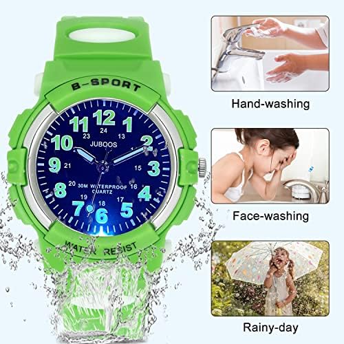 Kids analog watch with 7 Colorful Night Lights Time Teacher Learning WatchThe Children's Wrist Watch is special designed with beautiful colorful looking and comfortable wearing experience for kids. Wear resistance strap is not easy to break off, your kids will not lose the watch easily.It is easy to set time, children can do it by themselves.