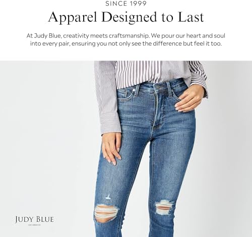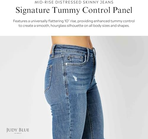 Judy Blue Women's Mid Rise Tummy Control Destroy Skinny Denim Jeans, 88798