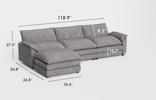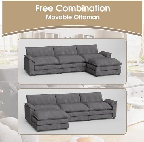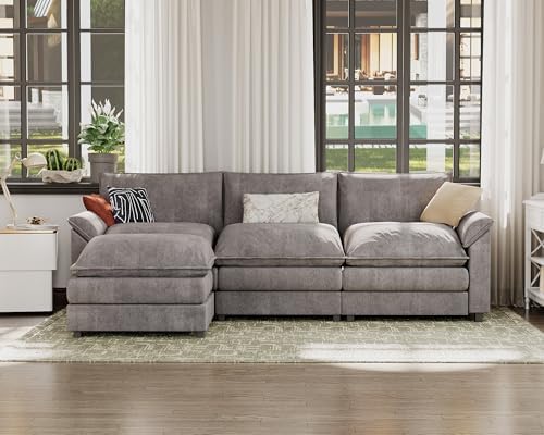 Deep 4-Seat Sofa Couch with Reversible Ottoman The JUMMICO modular sofa is a perfect blend of sophisticated upholstery and smooth lines for beauty and comfort. Its versatile design makes it perfect for a variety of settings, be it an apartment, a living room, or even a conference room. The modular structure increases its adaptability, allowing it to blend seamlessly into any interior environment. Carefully selected upholstery not only enhances its visual appeal, but also ensures a plush and comfortable seating experience. Whether you are hosting a party or just relaxing with friends, this sofa embraces them with its inviting design and creates a warm and pleasant atmosphere. In addition, the modular design of this sofa gives you the flexibility to arrange the seating configuration according to your needs. In short, this combination sofa harmonizes style and comfort. Its versatile modular design, combined with its comfortable upholstery, makes it ideal for any interior space, whether it is a personal apartment, a cozy living room or a professional conference room. Experience the perfect balance of aesthetics and comfort with this exceptional piece of furniture.
