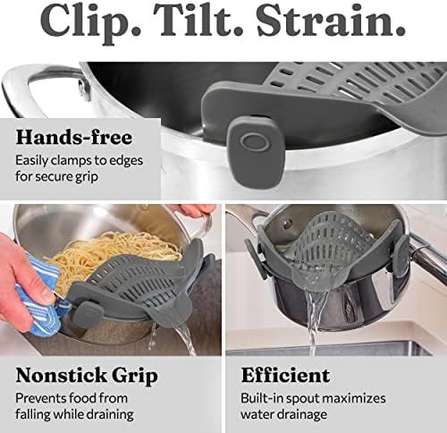 I love how easy it is to use. Sometimes it’s a little hard to clip on the side of a pot (especially small pots) but works great and easier to clean than a strainer.