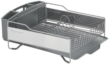 KitchenAid Large Capacity,Full Size, Rust Resistan Dish Rack Angled Drain Board and Removable Flatware Caddy, Light Grey