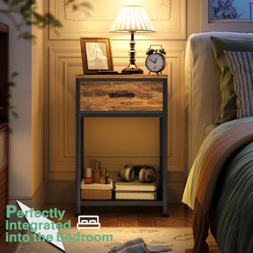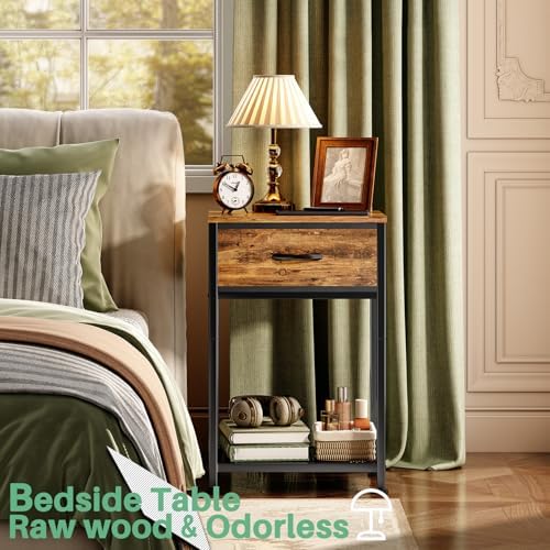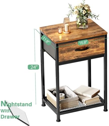Designed in a rustic style, end tables with drawers complements any room and works perfectly as a side table set of 2 in the living room, providing convenient access to everything