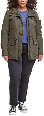 Garment dye cotton four pocket field jacket with attached hood