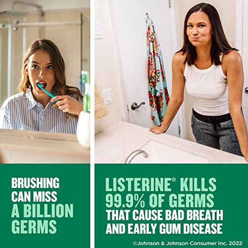 Protect your mouth from germs and get fresh breath with Listerine Freshburst Antiseptic Mouthwash. It kills 99.9% of germs that cause bad breath, plaque, and gingivitis for a fresher and cleaner mouth than brushing alone. Clinically shown to reduce 52 percent more plaque and 21 percent more gingivitis than brushing and flossing alone, this antiseptic mouthwash provides a deep clean that cares for your whole mouth. Listerine Freshburst Mouthwash is a recipient of the ADA Seal of Acceptance for fighting plaque and gingivitis. The great-tasting Freshburst spearmint flavor of this antiseptic mouthwash leaves your mouth feeling clean and fresh. With approximately 12 days in this 500-mL bottle, achieve maximum results by rinsing with this refreshing mouthwash for 30 seconds twice a day†, both morning and night, for 24-hour germ protection. *Based on laboratory testing. Data on file. Stock up with this 2-pack of 500 mL bottles of mouthwash.