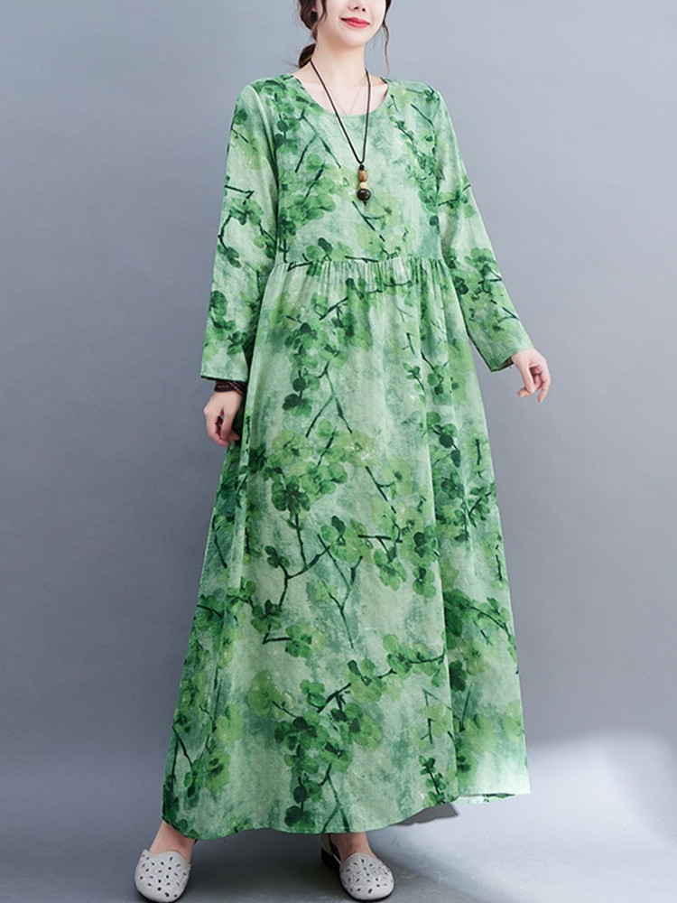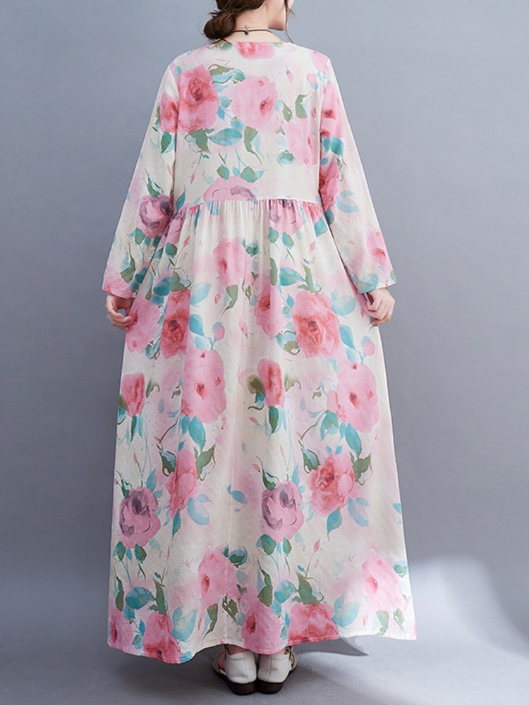 long sleeve oversized cotton vintage floral dresses for women casual loose spring summer autumn dress elegant clothing