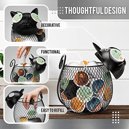 Love this great little kitchen coffee pod holder! Cute and funcional for any cat lover. Goodamount of space for pods and who doesn't love the extra spots where the eyes go lol!