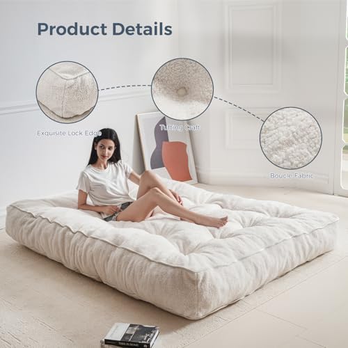 Brand MAXYOYO Assembly Required No Seat Depth 53.99 inches Seat Height 8 Inches Weight Limit 600 Pounds Color Beige Special Feature Vacuums Size Full Age Range (Description) Adult Fill Material Shredded Foam Item Firmness Description Medium Product Dimensions 80 x 54 x 8 inches Item Weight 51.5 pounds Manufacturer MAXYOYO ASIN B0D89X6XKQ Best Sellers Rank
