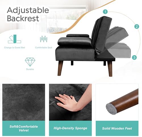That is very easy to install, sturdy, comfort and good looking,the only thing is the size of the sofa bed is not big enough for a adult, so make sure you see the dimensions before you order it. We were looking for a smaller sofa on the side of my living room, so this is perfect for us, and my 12 years old son love it.