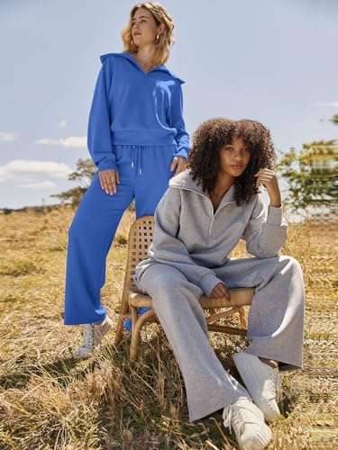 With its fashion-forward design, this loungewear set features a foldover collar and a trendy 1/2 zipper v neck.