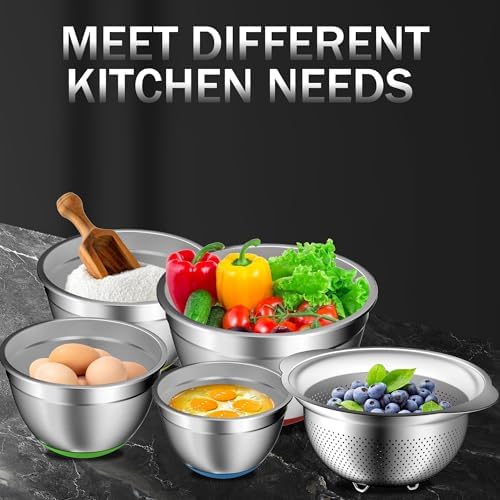 Mixing Bowl Set and Colander - Stainless Steel Mixing Bowls - Mixing Bowls with Lids Set - Kitchen Gadgets 2024 Nesting Salad Bowls with Strainer for Mixing & Preping & Baking, Multicolor
