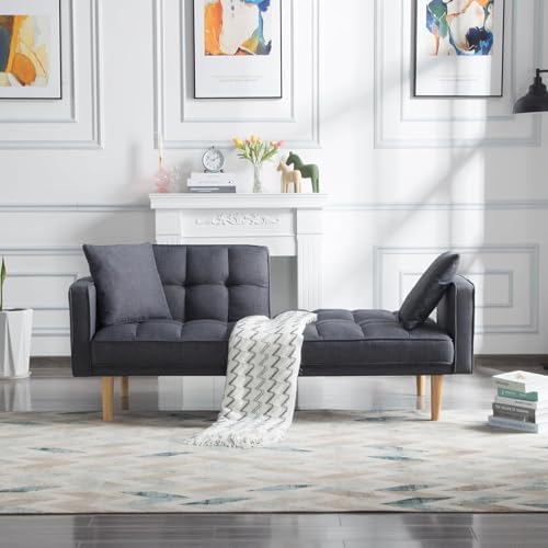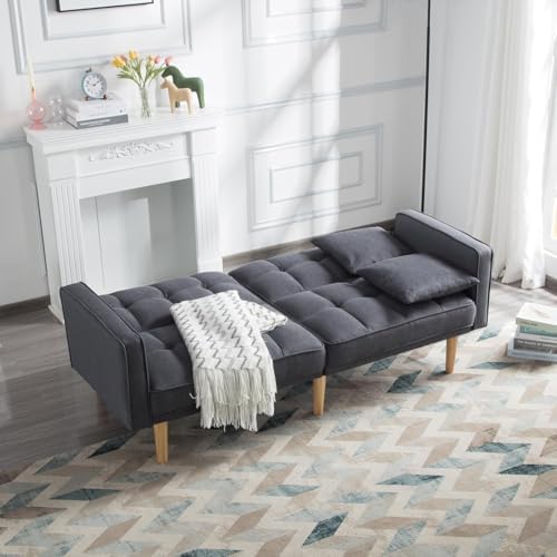 Modern Folding Sofa Bed 70.9" Futon Couch Convertible Tufted Loveseat with Adjustable Backrest for Living Room Lounge,2-Seats Sturdy Wood Legs Fabric Home Recliner Sofa,Dark Grey