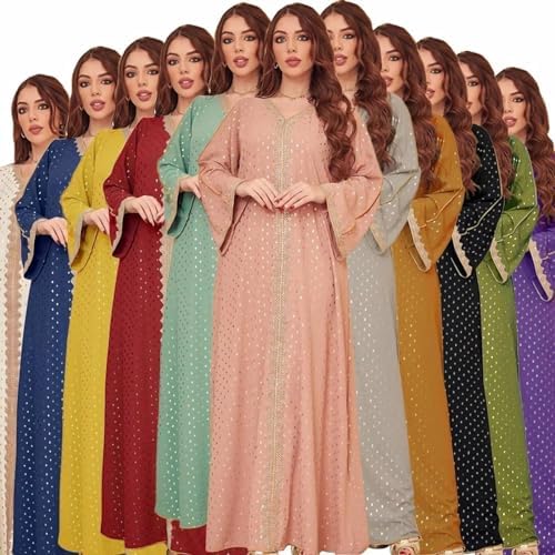 Muslim Abaya Dresses for Women V Neck Kaftan Islamic Prayer Robe Embroidered Bronzing Dress Holiday Evening Dress