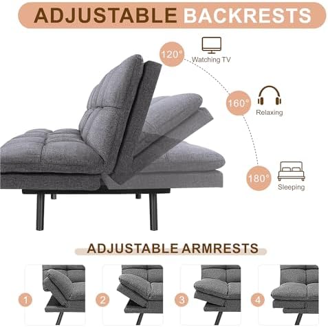 MUUEGM Modern Convertible Memory Foam Futon Sofa Bed, Creating a Boutique Experience for The Better Life!