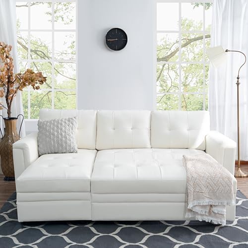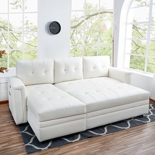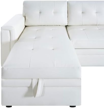 Naomi Home Lily Sectional Sleeper Sofa with USB Ports-L-Shaped Couch Convertible Pull-Out Bed, Ample Storage,Timeless Design,Sturdy Construction,Long-Lasting for Modern Living,White, Air Leather